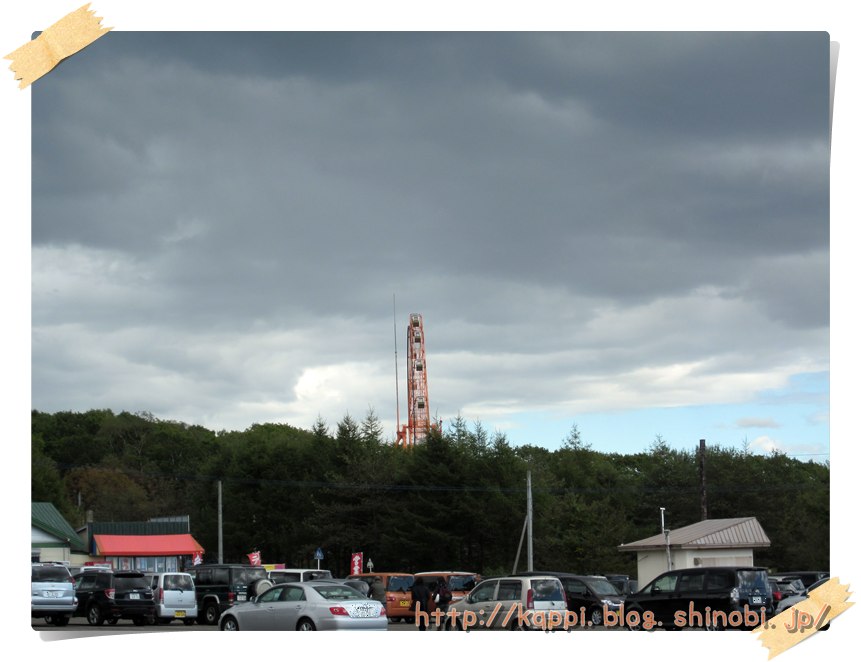 山花オートキャンプ場に到着してちょっと休憩。お腹も空いたしお弁当でも食べようかと空を見上げたら、