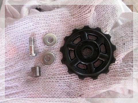 画像は、テンションプーリーだけですが、きちんとガイドプーリーも洗浄しました。
