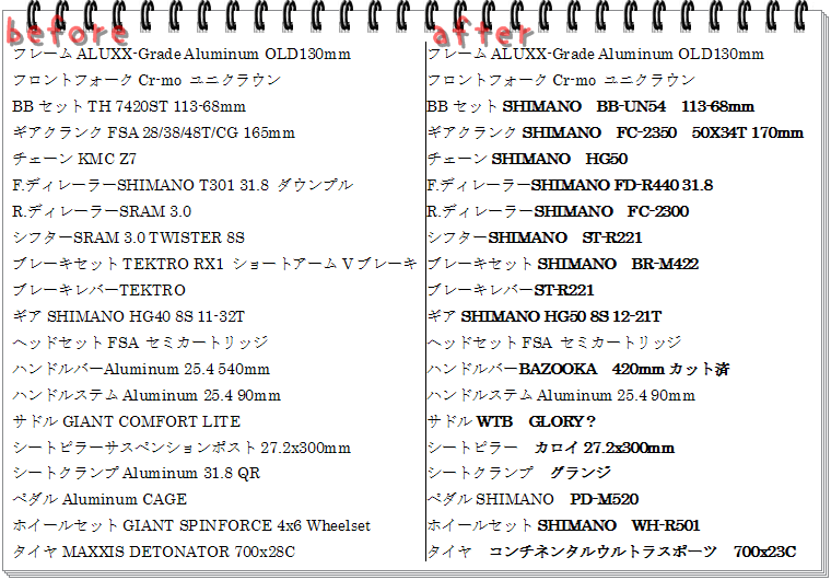 全て安物だけど改造費を合わせるとGIANTでも安いロード1台は買えたかな?位になっちゃいましたね(^^;